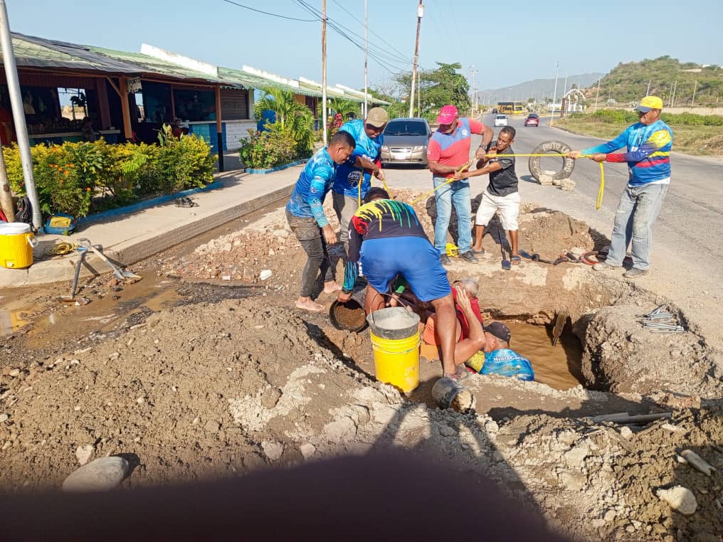 (Prensa MinAguas / Hidrocaribe 16-02-2024).- Bajo el objetivo de optimizar el servicio de agua potable para ocho mil 500 habitantes del municipio Bermúdez, se corrigió avería en la tubería de 10 pulgadas que se localiza en la avenida Luis Mariano Rivera en Carúpano, estado Sucre: