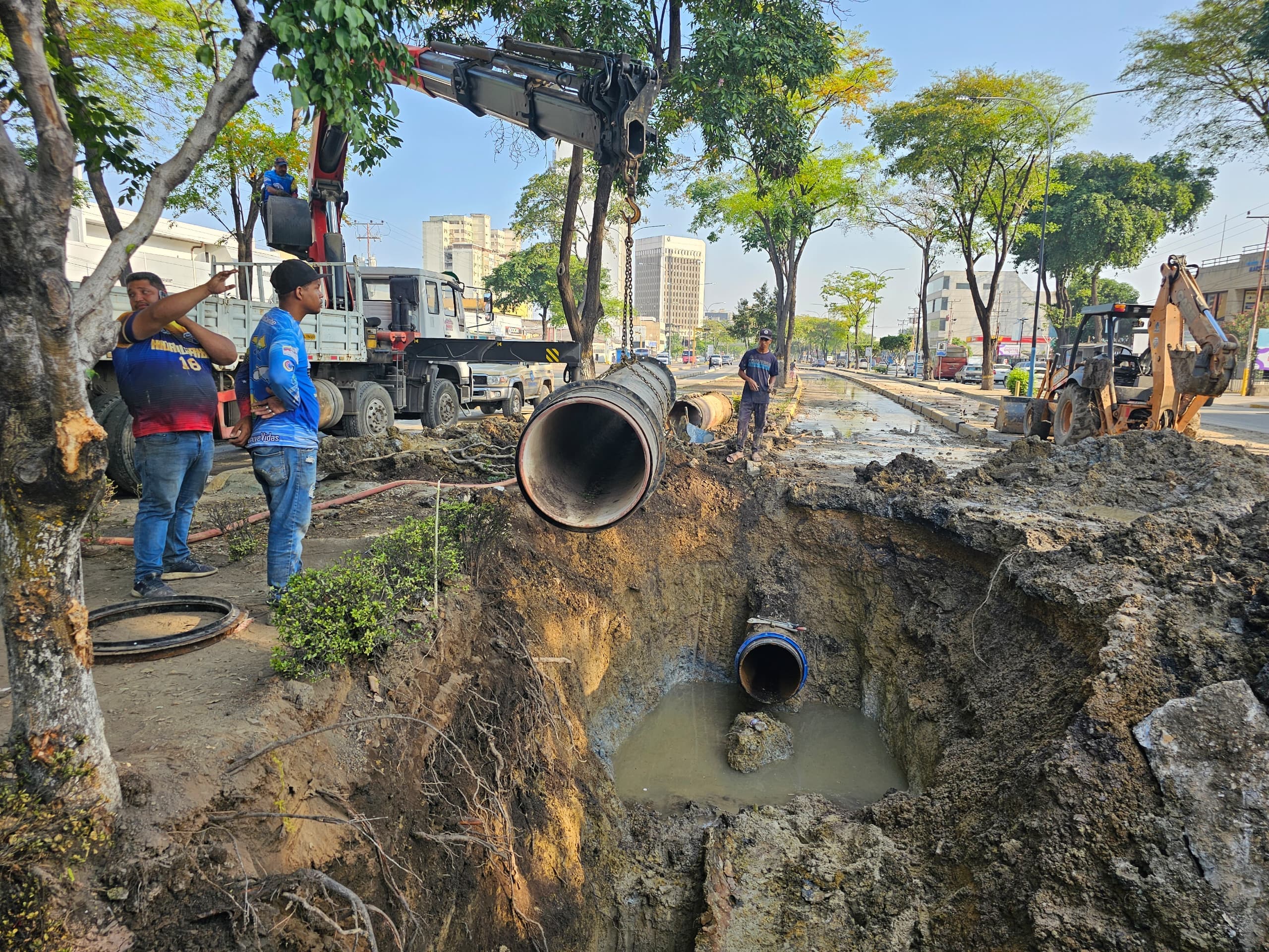 Asimismo, Sapiain detalló que las averías se presentaron en la avenida Municipal de Puerto La Cruz e iniciaron los trabajos de reparación colocando una faja mecánica de 24 pulgadas, que permitió corregir el primer punto.