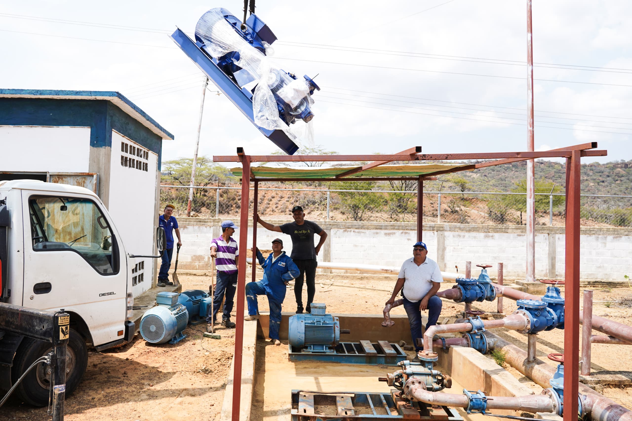 (Prensa MinAguas / Hidrofalcón 07-03-2024).- Dando cumplimiento a las orientaciones del presidente Nicolás Maduro, de fortalecer el sistema hídrico nacional en el país para garantizar una mejor calidad de vida, Hidrofalcón recibió equipos de bombeo para la rehabilitación de estaciones de bombeo de agua potable en Corralito y Urumaco de los municipios Democracia y Urumaco, respectivamente.