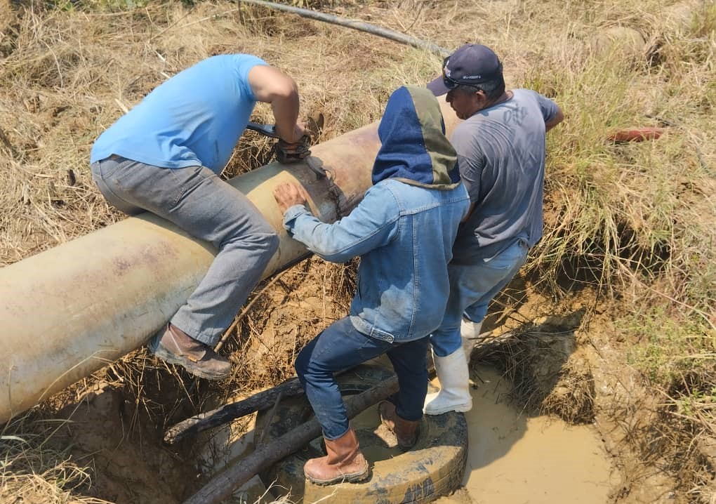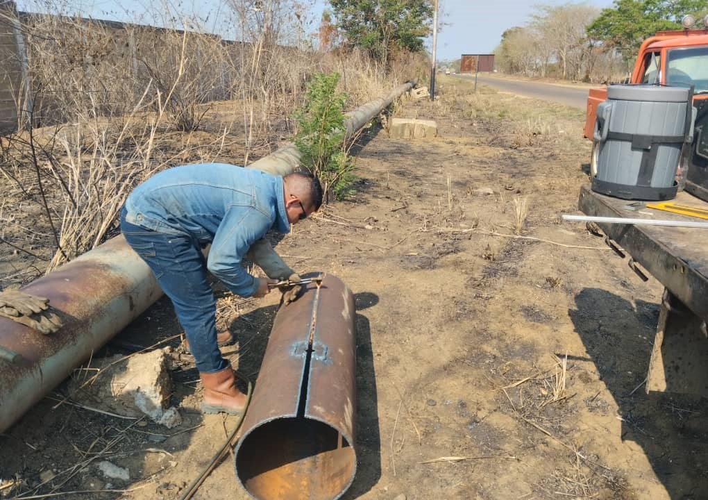 (Prensa MinAguas / Hidropáez 08-03-2024).- Desde el sector Fogoncito de la parroquia Valle de la Pascua, municipio Leonardo Infante, la Fuerza Laboral de Hidropáez realizó trabajos de soldadura en el alimentador principal de 16 pulgadas en acero correspondiente al sistema noroeste que abastece del vital líquido a más de mil 500 familias de los sectores Los Cerritos 1, 2 y 3, Valle de Saron, El Palmar y Lirios del Valle.