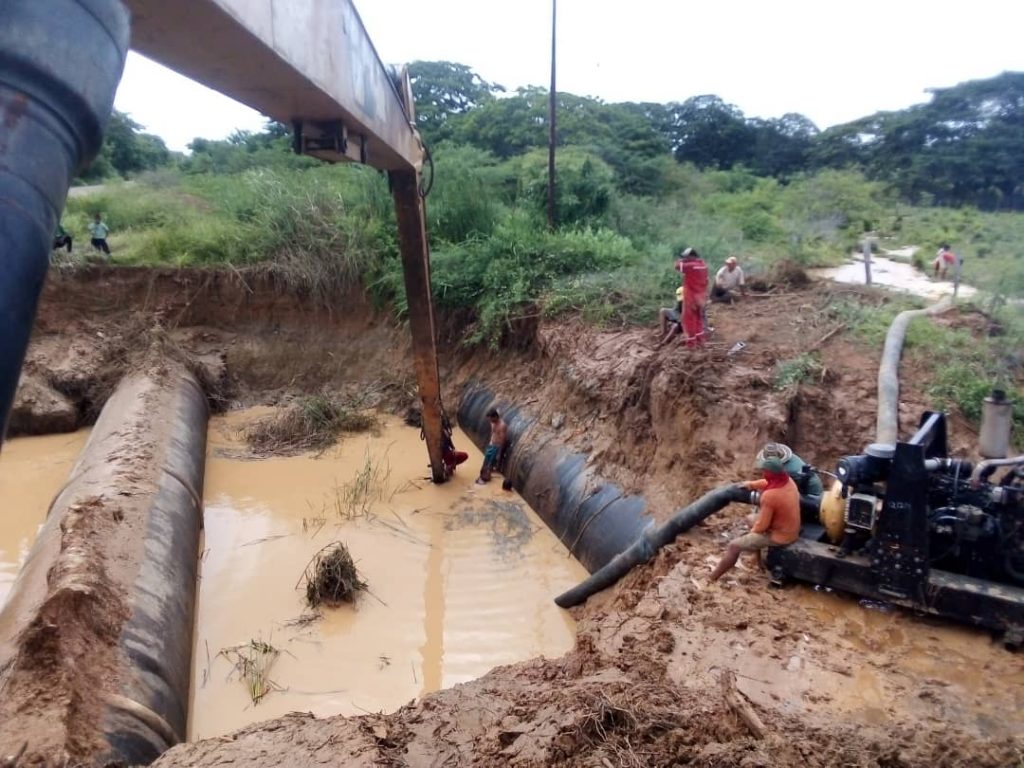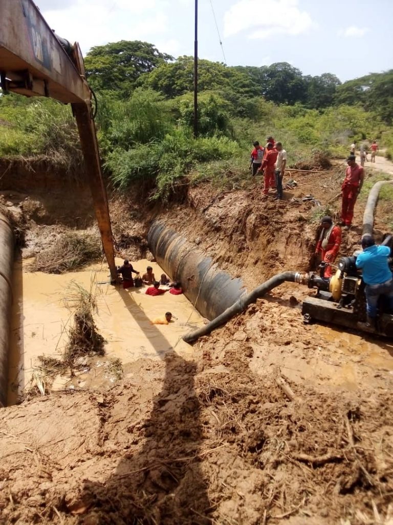 Prensa MinAguas (28-08-2021) En el marco de las acciones que desarrolla el Ejecutivo Nacional para garantizar el suministro de agua ante la contingencia que enfrenta el país por las fuertes precipitaciones, el Pueblo Trabajador del Agua, con el apoyo de los tres niveles de gobierno, se abocó a una nueva intervención de la aducción principal del sistema Manuelote – Tulé – Tres Ríos, en labores propias de recuperación de caudal resultante del Plan de Reparación de Fugas que ejecuta la hidrológica del estado Zulia.