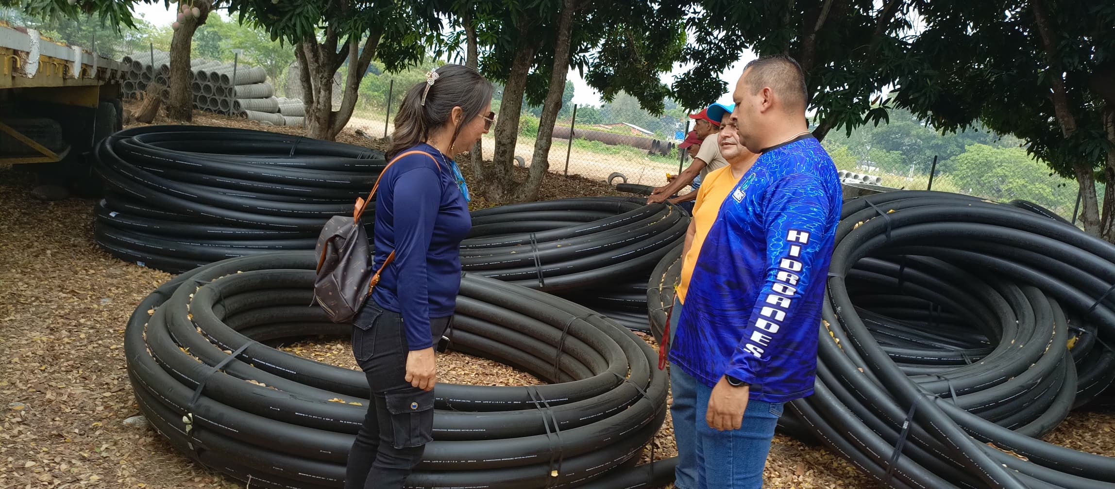 (MinAguas / Hidroandes 01-04-2024).- El ministro del Poder Popular de Atención de las Aguas, G/D Rodolfo Marco Torres, en respuesta al compromiso con el Gobierno Nacional, instruido por el Presidente Nicolás Maduro, de fortalecer el suministro de agua potable a las comunidades más necesitadas, entregaron 1200 metros de tubería de Polietileno de Alta Densidad (PEAD) de 90 milímetros.