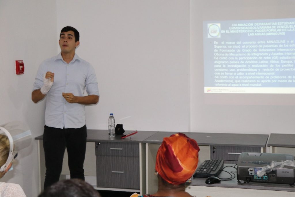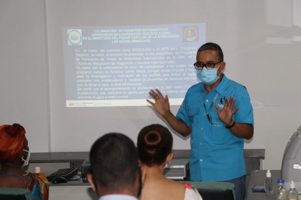 Prensa MinAguas (22-07-2021).– En el marco del convenio entre el Ministerio del Poder Popular de Atención de las Aguas (MinAguas) y el Ministerio del Poder Popular para la Educación Universitaria (MPPEU), culminó el primer período del proceso de pasantías de los estudiantes del Programa de Formación de Grado de Relaciones Internacionales de la Universidad Bolivariana de Venezuela (UBV).