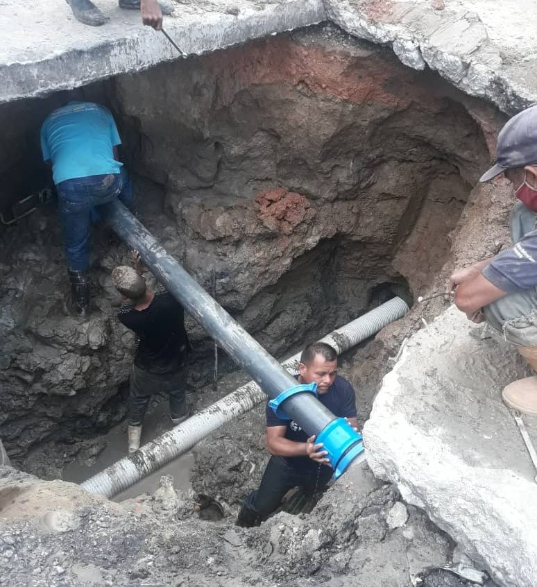 De igual forma, en Ciudad Alianza se reconstruyó un ramal de empotramiento a una profundidad de tres metros, en la Av. Carabobo de la 2da Etapa, y en el sector 1ero de Mayo, calle Páez, cruce con calle Diego Ibarra, se colocó un tramo de colector de 5.40 metros lineales con diámetro 8 pulgadas.