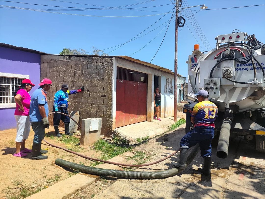 La Fuerza Trabajadora de Hidrocaribe se desplegó en las comunidades de El Barbudo, Villa del Sur, Virgen del Valle, y Sabilar I de Malariología, para efectuar maniobras de destape de tanquilla con varillaje, saneamiento en colectores y bocas de visita, distribución de agua potable a través de súper cisternas y corrección de averías.