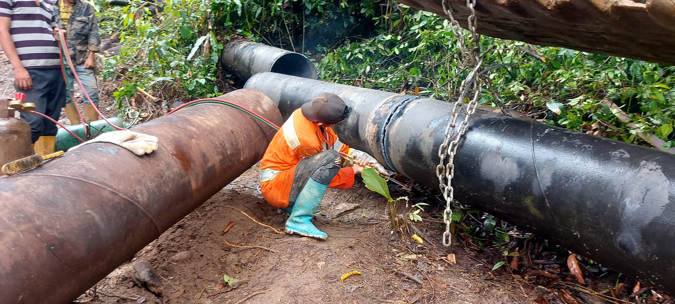 Las labores contemplaron la sustitución de 295 metros de tubería de acero al carbono de 20 pulgadas, que fueron trasladados a la zona montañosa del tramo Peña Colorada con el empleo de equipamiento y maquinaria especializada.