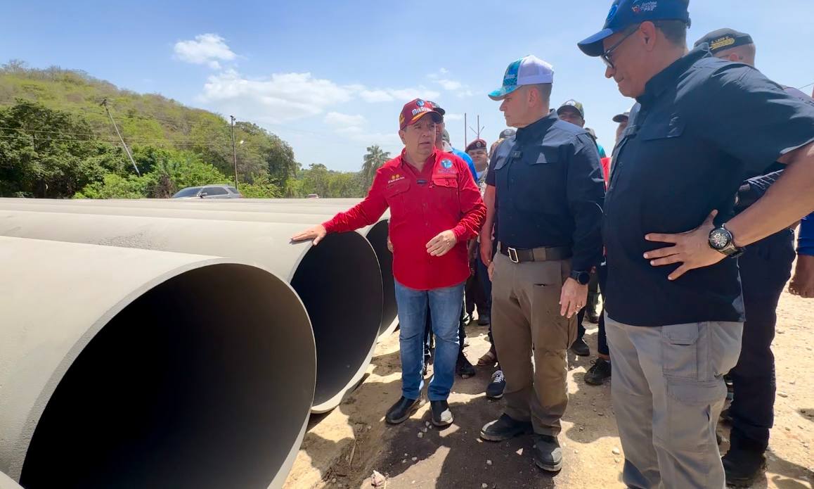 (Prensa MinAguas 25-04-2024).- El ministro del Poder Popular de Atención de las Aguas, G/D Rodolfo Marco Torres, junto con el padrino del estado Sucre, A/J Remigio Ceballos, el gobernador de la entidad, Gilberto Pinto, el alcalde del municipio Bermúdez, Julio Rodríguez y el presidente de HidroCaribe, Lucas Sapiain, inspeccionaron este jueves 25 de abril los avances en las obras de rehabilitación del sistema Carupanero que contemplan la instalación de 3 kilómetros de tubería de acero al carbono de 42 pulgadas, colocación de válvulas y ventosas para presurización, así como la corrección de averías en la aducción de 100 kilómetros.