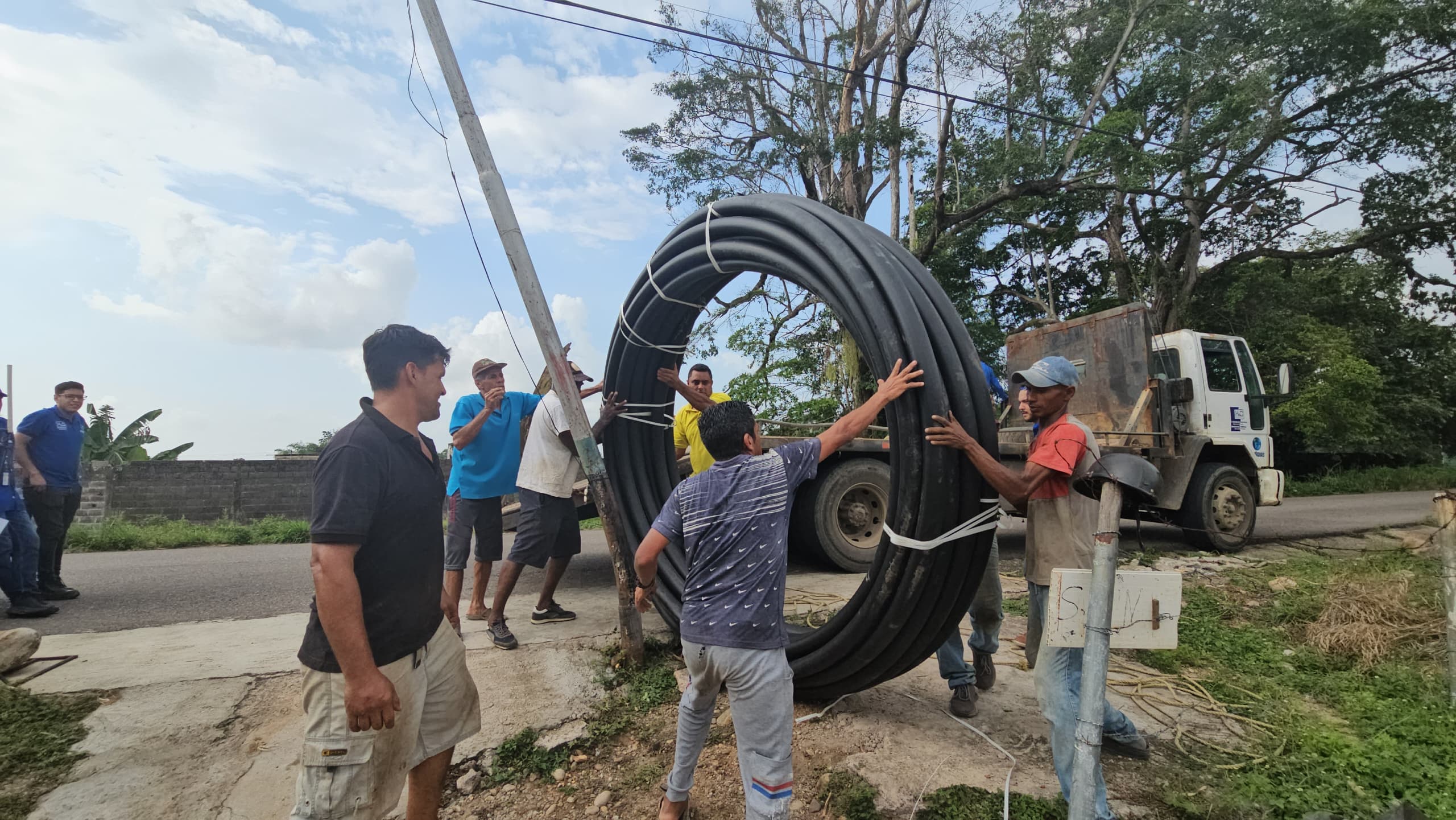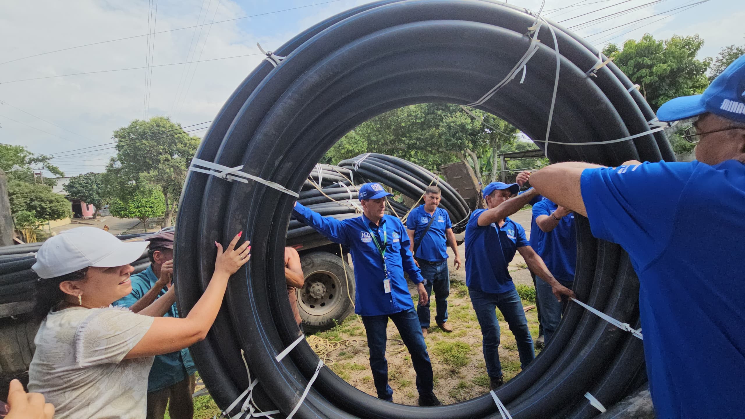 Cumpliendo con los compromisos adquiridos previamente con las comunidades de Las Minas y Brisas del Socorro, se procedió a la entrega de 500 metros lineales de tubería Pead de 4 pulgadas, para atender a un total de cinco mil familias.