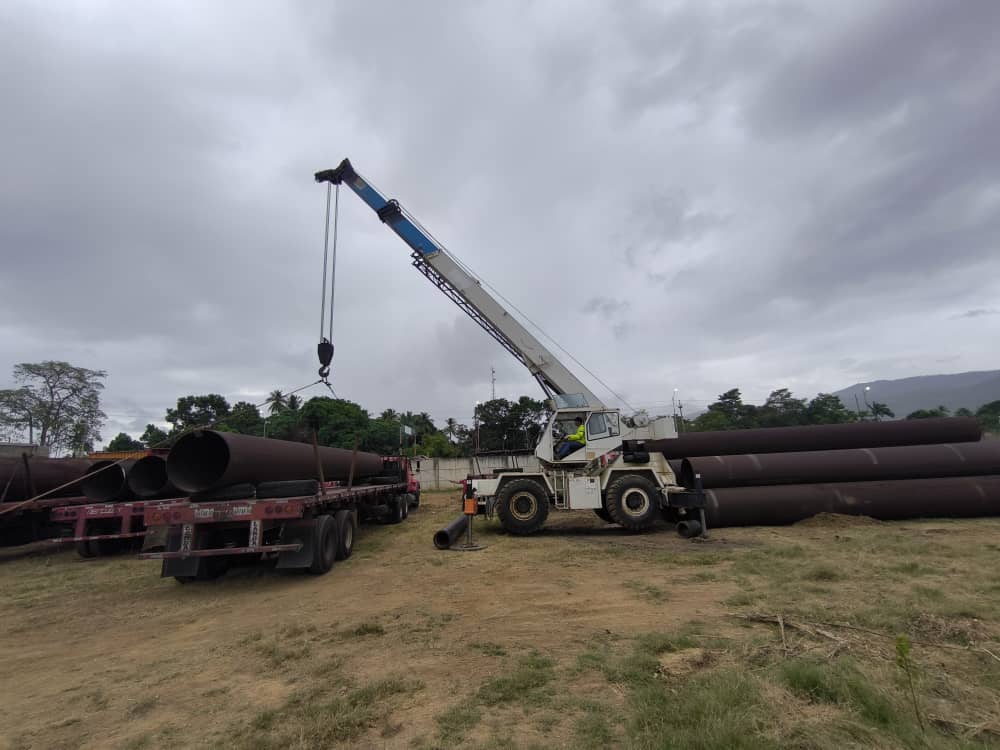 En este sentido, el presidente de Hidrocaribe, Lucas Sapiain, informó que 432 metros de tubería de acero al carbono de 42 pulgadas fueron descargados en Cariaco, este sábado 4 de mayo, con el objetivo de incorporarlos en el tramo de rehabilitación de El Carupanero que le corresponde al municipio Ribero y que está en marcha desde la tercera semana del mes de marzo del 2024.