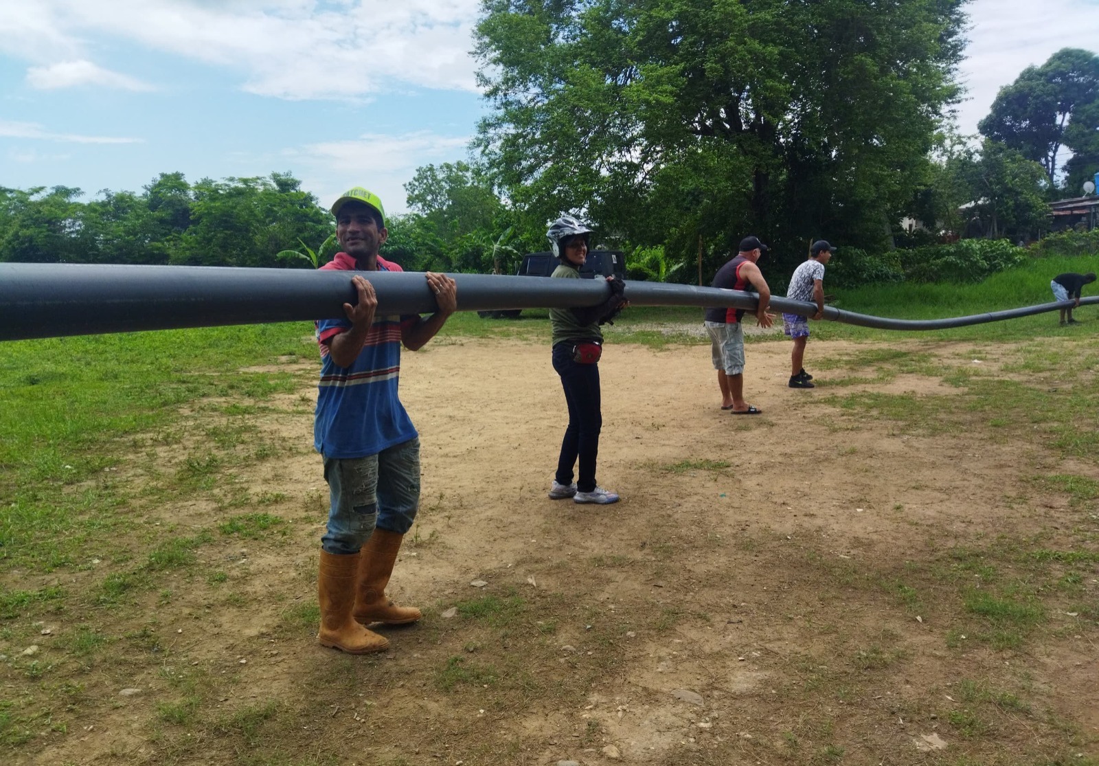 En su primera fase se trasladó la tubería hasta el sector donde la comunidad organizada recibió y descargó los 240 metros de tubería en conjunto con la Alcaldía del municipio.