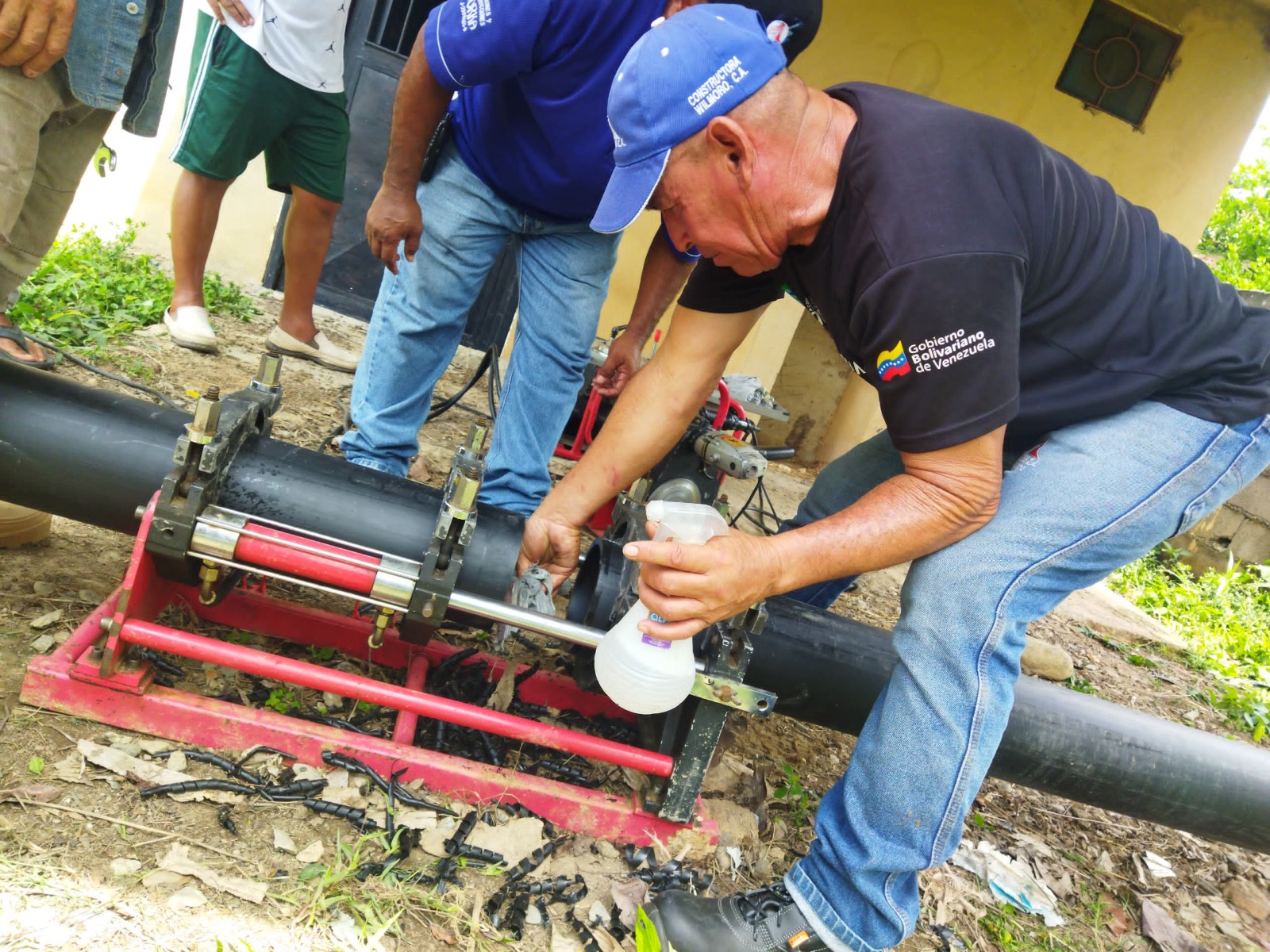 Nuestras cuadrillas junto con el Poder Popular, realizaron trabajos de excavación y posteriormente el empalme con maquinaria termofusión, logrando conectar a la red principal tubería de hierro galvanizado de 6 pulgadas, suministrando un caudal de 30 litros por segundo de agua a los sectores Las Mesetas de Chimpire y Coco Frio.