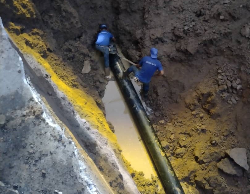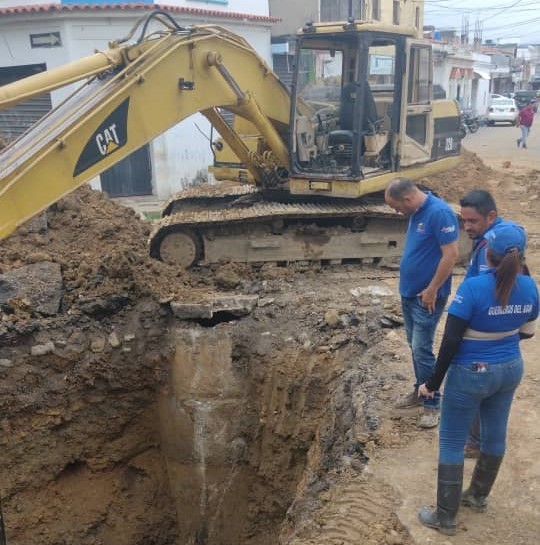 Las obras se iniciaron con la excavación de 4 metros de profundidad para la revisión y desmontaje de la tubería averiada y posterior sustitución en las calles 5, 6 y 7 del Barrio Lagunitas de San Antonio, capital del mencionado municipio.