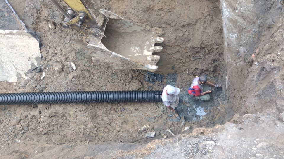 La Fuerza Trabajadora retiró 250 metros cúbicos de material con retroexcavadora tipo jumbo, cumpliendo con las medidas de seguridad correspondiente a las acciones en las redes de aguas servidas, que se encuentran debajo del embaulamiento de aguas pluviales de 3 metros de profundidad.